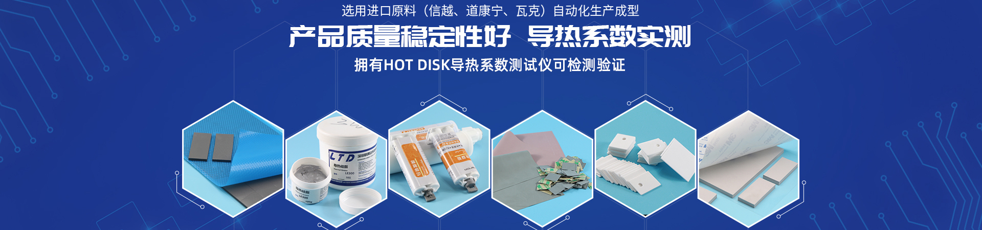 公司具有從原料配方、混煉、配色、攪拌、抽真空到硫化成形等一條龍生產能力。主要產品有:導熱硅膠片,導熱陶瓷片,導熱硅脂,導熱泥,導熱灌封膠,導熱雙面膠,導熱石墨膜等導熱絕緣材料。阻燃防火性能符合U.L 94V-0 要求,并符合歐盟SGS環(huán)保認證 及ROHS要求。可為手機、LED照明、電源、筆記本電腦,平板電腦、家電、網(wǎng)絡產品等 相關行業(yè)的客戶提供一站式導熱絕緣材料產品及散熱解決方案!